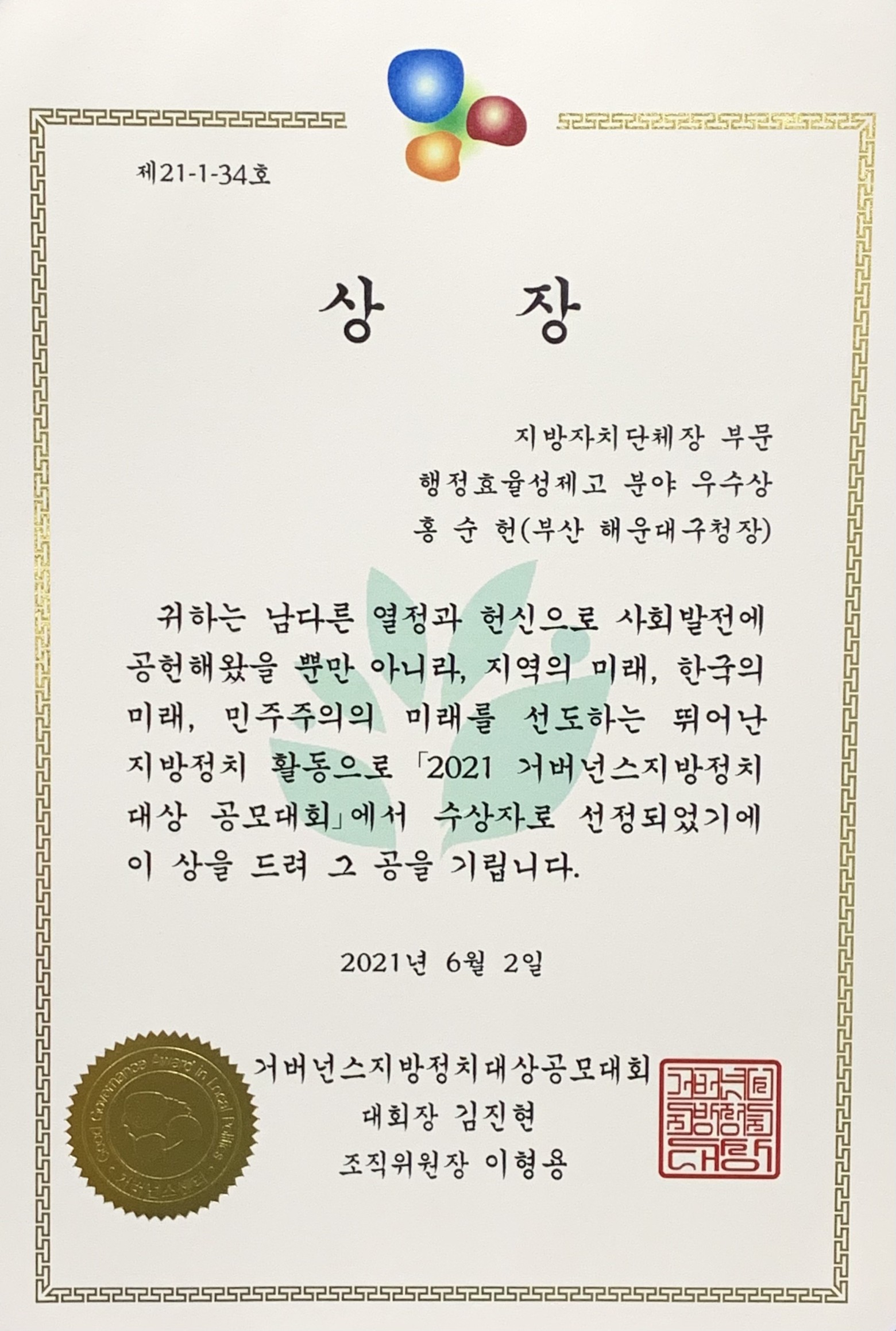210607-2021거버넌스 우수상 수상